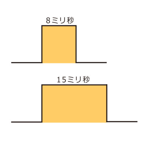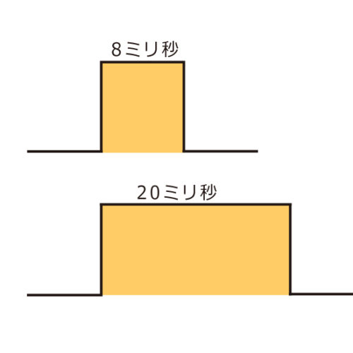 光脱毛機では、発光時間を短くすることで、機械全体を小型にできます。最も小型な家庭用マシンでは、発光時間(パルス幅)は、ごくわずか。業務用でも100V...
