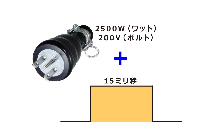 光脱毛機では、発光時間を短くすることで、機械全体を小型にできます。最も小型な家庭用マシンでは、発光時間(パルス幅)は、ごくわずか。業務用でも100V稼働のポータル型の多くは、6~8ミリ秒です。